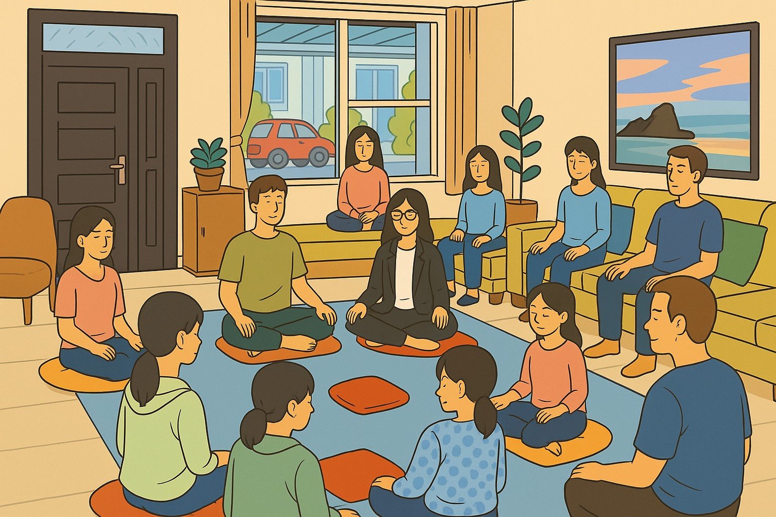 What to bring: Water bottle. Chairs and floor cushions will be provided by the hosts, but participants are welcome to bring their own cushions and/or blankets.